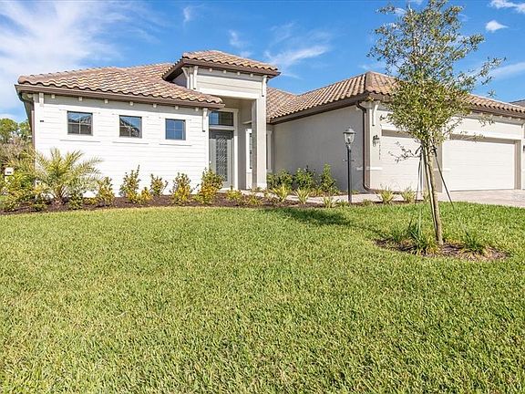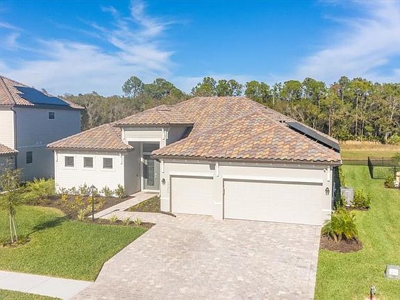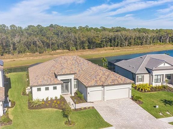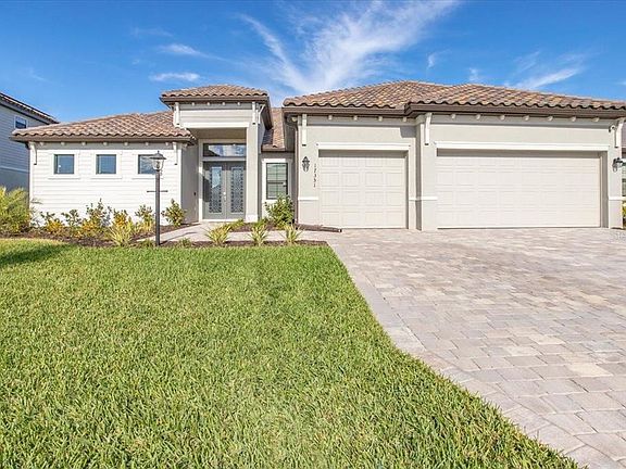 Absolutely Gorgeous! This 2600 sf Sunset home by Lennar is located in the fabulous Polo Run community in beautiful Lakewood Ranch. Sitting on the edge of a lake/preserve lot, this pool/spa home boasts 3 bedrooms, a den, 3 baths (one of which is a pool bath) loads of natural light, open, airy living spaces and breath-taking lake/preserve views!! Details like double, leaded glass front doors & transom, gracious entryway, high ceilings, 8 ft doors and tile throughout add to the superb character of this home. Let your Florida lifestyle begin as you relax in the shade of the large under-cover seating area and spend hours enjoying the pristine lake/preserve views, exciting wildlife, crystal clear pool & spa and expanses of green grass and sunny blue skies! This open space concept of this home seamlessly connects living, dining and kitchen areas for ease in entertaining and/or quiet relaxation. This true split floor plan separates guest and master quarters and allows for easy flow and lots of privacy. The gourmet kitchen is complete with solid wood cabinetry, sleek granite counter-tops, gleaming, all-stainless appliances, double ovens, gas cooktop, panty closet and large island with breakfast bar - there's even a spacious dining area right off the kitchen!! The living room is generously sized, has a dramatic tray ceiling feature and 4 large sliders that allow a smooth transition from indoors to the beautiful outdoors! The master suite has sliding doors that lead out onto the lanai, 2 separate walk-in closets and an en-suite bath with dual sinks, granite counters, separate water closet, larger tiled shower and high wall windows that allow for both light and privacy. Other features of this home are separate laundry room with huge storage closet and cabinetry, 3 car garage - perfect for golf cart, storage, workshop or workout space and electricity generating solar panels. All this is set in a friendly community with resort style amenities including, pool, fitness center, parlor room, yoga studio, playground, pickleball, basketball, bocce ball and tennis! As Lakewood Ranch offers A+ rated schools, close proximity to St. Pete's, Downtown Sarasota, world Class shopping & dining at UTC and, of course, our world-famous sandy Gulf beaches - this is the BEST place to call home!!