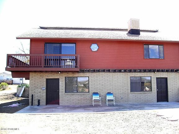 Site built home in Spring Valley, on one of the best streets for views. this cabin feeling home has a wraparound deck with views for miles on two sides. The top level has one bedroom and 1.5 bathrooms with wood vaulted ceiling and open great room with windows all around and laundry room. The lower level has guest quarters featuring a kitchen, bedroom and 3/4 bath with separate entrance, 2 car garage and another laundry area. The outside had full RV hookups for possible guests to stay. The only site built home under 150K with a two car garage in Mayer, Spring Valley and Cordes Lakes.New water heater and newer roof. Living room has rough in for woodburning stove pipe.