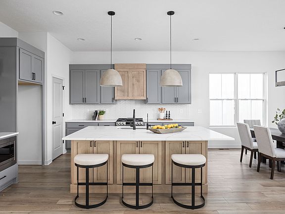 Welcoming covered front porch into the open concept main floor of this move in ready, 4 bedroom home in Midland! Gourmet eat in kitchen with quartz countertops and custom cabinetry opening to the great room with cozy fireplace. Executive office layout to make working from home a breeze. Upstairs features 3 bedrooms including the owner's suite with garden tub, tile shower, double sinks and large walk in closet that is connecting to the laundry room. The finished lower level is complete with a guest bedroom and full bath with plenty of space to entertain and includes a wet bar rough in. FULL LAWN IRRIGATION! Enjoy the walking paths including direct access to the Midland Train and all the amenities to come that will include sports courts, splash pad, pool, & more!