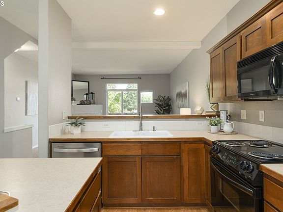 Great value on conveniently located Beaverton Townhome with fenced yard and low HOA! Mature trees offer privacy at the front and territorial views can be seen from the back. Inviting floorplan offers open concept living with dual master suites, spacious kitchen, and 2-car tandem garage. Brand new carpet throughout, new dishwasher, central air conditioning, modern roller shade window treatments, and more. Whether you enjoy shopping/dining, staying active at nearby parks, or hunkering down in a sweet place to call your own, this home is for you! Close to major employers and Beaverton Schools. Investors welcome.