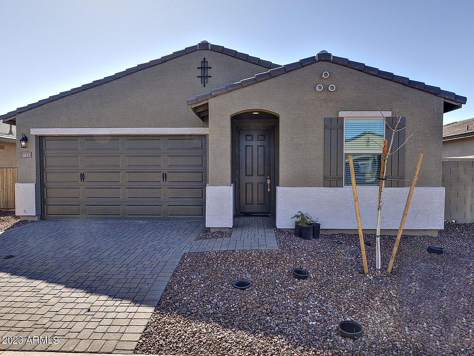 Brand NEW energy-efficient home ready NOW! The Jubilee steals the show with a spacious living concept. Espresso cabinets with white/grey granite countertops, wood-look tile flooring with multi-tone carpet in our Elemental package. This family-friendly community provides easy access to Loop 303 with close proximity to job corridors in the west valley. Known for their energy-efficient features, our homes help you live a healthier and quieter lifestyle while saving you thousands of dollars on utility bills.