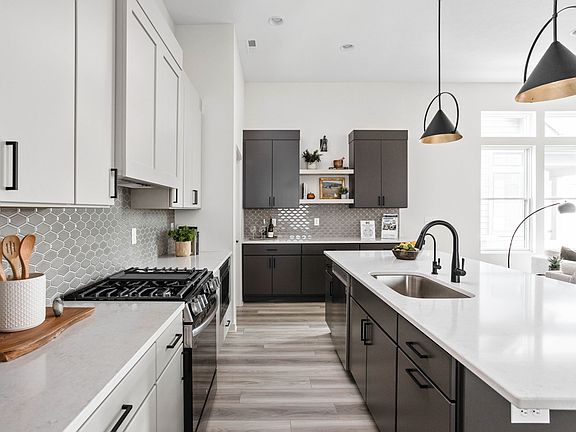 This ranch floor plan by Estridge has everything you need to call Midland home! Welcoming front porch into the open main floor great room with gas fireplace featuring tile to the ceiling. Gourmet eat in kitchen with quartz countertops, plenty of cabinet space and SS appliances. Main floor owner's suite with double sinks, tile shower walk in closet and access to the cover lanai. Private office with French glass doors. Finished lower level featuring the 3rd bedroom, full bathroom and an entertainment space to make your own! Plenty of storage space and transom windows to bring in natural light. Check out the amenities to come including pool, splash pad, concert pavilion, stocked pond & sports courts! Walking paths connect to the Midland Trail.