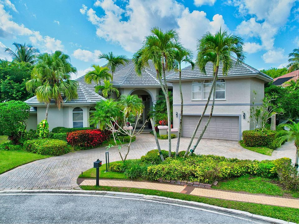 Five-bedroom + office home with Western exposure and lake views located in a quiet cul-de-sac in St. Andrews Country Club. The interior is light, bright, and open, with volume ceilings and floor-to-ceiling windows. The master suite, office, and 2 ensuite guest bedrooms are downstairs, with 2 additional guest bedrooms upstairs. Master suite features his & her walk-in closets and a separate half-bath for him. Eat-in kitchen is open to the breakfast area and family room, with a sun room off of the family room. New flat-tile roof was completed in January 2020. The home is in great condition and a great value in today's market. The quiet backyard faces west for beautiful sunsets. Note: The ''After'' photos have been digitally modified to show the possibilities for the property.