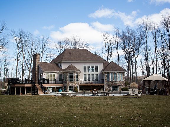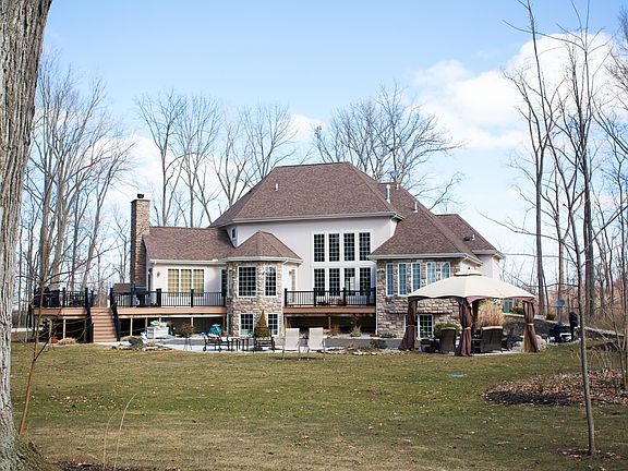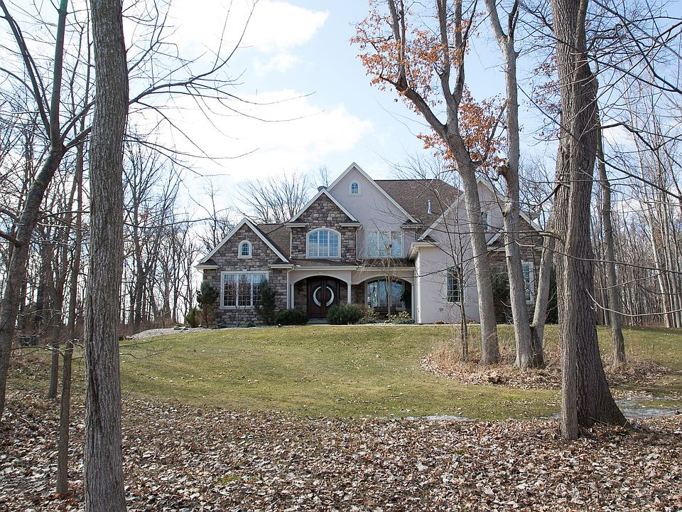 Custom built executive retreat sits on 5 wooded, private acres. This one of a kind home boasts volume ceilings throughout, brand new handscraped hardwood floors, a gourmet kitchen with island and bar seating, a huge master suite with sitting room, a full finished basement with theatre room, exercise room and sixth bedroom with full bath. Additional features include a Mossing free-form heated saltwater pool, 3-car heated garage, and a walking trail in your private woods.