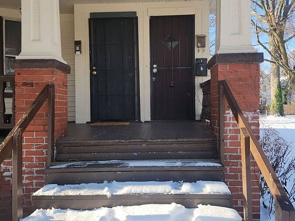 Charming Curb Appeal: The property at 1736-1738 Coit RD - Second Floor East Cleveland, OH 44112 boasts a charming exterior with a well-maintained facade. The inviting front entrance is complemented by a cozy porch, perfect for enjoying a morning coffee or greeting neighbors.