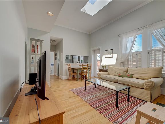 Stunning Top floor condo in the heart of Dupont Circle! Recently renovated kitchen and bathroom with high-end kitchen appliances that include Bosch refrigerator & Bosch dishwasher, GE cooktop and oven. Washer/Dryer replaced in 2019. HVAC only 3 years old with new thermostat. Natural light shines in through 2 skylights. 14ft ceilings. Hardwood floors. Wood burning fireplace. Built-in bookcases. Open Air balcony for romantic al fresco dining. Extra storage included. Very low condo fees. Wired for Comcast and Verizon. Blocks from restaurants, shopping, nightlife, Metro, and so much more.