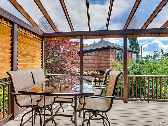 Uniquely designed modern NW 2 story & basement style w/ spaces optimized for views and privacy by a UW architecture professor features great territorial views & seasonal views of magnificent Seattle downtown skylines; new, elegant & masterly crafted cozy decks w/ covered porches for all weather enjoyment; custom hardwood floor throughout, w/ two-tone staircases for color transition between floors; live upstairs & rent basement w/ separate entrance; A/C & 2 gas fireplaces; over $133k improvements