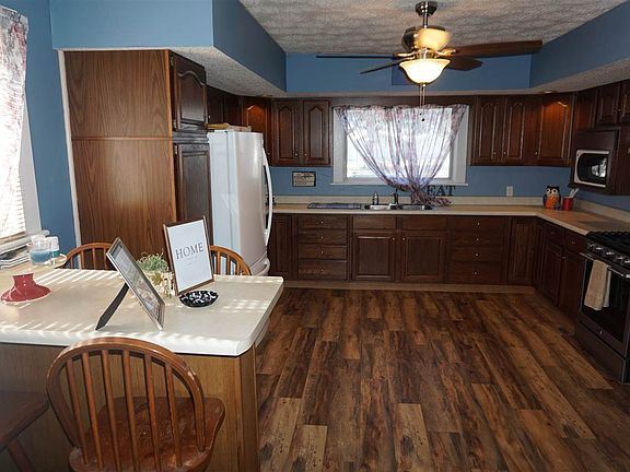 You will not believe all that this fantastic 4-5 bedroom, 3 full bath two story nearly 2,300 square foot home situated on the outskirts of historic Lincoln, Illinois has to offer you and yours at an incredible price! Main floor of home boasts an impressive 30 foot long open living/dining concept with both great floor space in addition to high ceilings, beautifully updated fully equipped eat-in kitchen host to tasteful newer laminate flooring, adjacent pantry, along with a breakfast bar area, gracious rear family room overflowing with natural light and featuring an open staircase as well as an exterior access point, quaint den/optional fifth bedroom if needed/desired with an adjacent full bath/laundry concept host to an additional exterior access point, two comfortable bedrooms, and a beautifully renovated full hall bath. Two separate entrances to separate upper levels can also be found within -- one leads to a separate bedroom -- rear staircase leads to a fantastic master suite host to neat slanted ceilings, two overhead skylights, along with an adjacent walk-in closet in addition to a private full adjacent bath host to an additional overhead skylight. Property also features a large usable basement, covered front porch, expansive covered side deck (great for entertaining and/or relaxing with family and friends!), fenced backyard host to a firepit area, incredible 30X44 2+ car detached heated garage (separate propane tank as house is on natural gas) complete with a bar, pool table, walk-in cooler, and urinal, maintenance free vinyl sided exterior, newer metal roof, fresh paint along with new floor coverings throughout various interior rooms, many recently modernized Hunter ceiling fans/fixtures, newer water heater (2015) -- the list goes on! All appliances to remain with property upon settlement for new owner(s) including washer and dryer. Private well/septic system on premises. Much to love about this fantastic edge of town residential dwelling situated on a nicely landscaped .32 acre lot within West Lincoln-Broadwell school district with NO rear neighbors -- A MUST TO VIEW! Call your agent of choice today to see 1736 600th Avenue, Lincoln -- a bargain priced turn key move in ready property situated just minutes from town!
