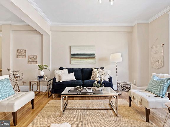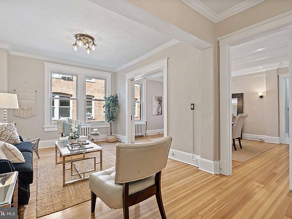 Elegant 2 bedroom/1 bath coop with Old-World Styling and loaded with charm and character! Soaring 9-foot ceilings accent the original trim, leaded glass cabinets and gorgeous heart of pine hardwood floors, lending this apartment a sophisticated, pre-war charm. The center piece of this magnificent space is the massive grand dining room where you can host dinner parties for 12 guests in style or just enjoy quiet meals with your family. The adjacent living room is separated by original 1915 floor-to-ceiling pocket doors, and offers fabulous space for entertaining and daily living. The kitchen has new laminate flooring and upgraded counters, and the space allows for a small breakfast table and offers acres of counter space for food preparation. Ample cabinetry provides for all of your kitchen storage needs. A key feature of this unit is the quiet it affords. Main living areas face onto an inner courtyard which is protected from street noise, while the two spacious rear bedrooms face into a rear yard with mature trees. The second room can function as a bedroom or a home office and is connected to the fabulous balcony nestled in the nearby trees. The quietude of this apartment allows you to easily escape the hustle and bustle of the city streets outside. Solid concrete floor infrastructure offers amazing insulation from noise above and helps to hold heat in winter and cool in summer. A just-completed, full gut renovation in the bathroom created an elegant and functional space with a soaking tub & shower and black and white tile throughout. All CPVC piping was used for water lines so they won't be subject to decay the way copper or steel would be. The entire flat has also just been freshly painted. Beverly Court Cooperative is a wonderful community of engaged neighbors born out of the 1970’s DC artist scene, and many residents exhibit their artwork in the building’s hallways. The magnificent rooftop deck offers 360-degree panoramic views of the city and monuments. Amenities in the coop include a lower-level laundry room with no-charge washers and dryers, a shared bike storage room, an updated fitness room with loads of equipment, a carpentry work room with woodworking tools and garden potting equipment & materials, and a resident sharing library. A large storage locker is assigned to this unit, and additional lockers can also be rented. The monthly coop fee of $870.25 includes all real estate taxes ($247.61), as well as water/heat/building maintenance & insurance ($387.66) and a monthly payment towards the underlying mortgage ($234.98). The total amount of the Underlying Mortgage for this unit is $26,716. When purchasing a co-op, you subtract the amount of the underlying mortgage from the purchase price, which reduces the amount of funds needed at closing. Available internet service providers are Verizon (DSL or FiOS), RCN cable, and Comcast. This pet-friendly building does allow for washer/dryers to be installed, and the board is in discussions about the feasibility of adding central air conditioning. Energy efficient, double-paned building windows were installed in 2002. Elevator refurbished in 2015. Central hot water boiler redone in 2020. Located across the street is a super convenient Safeway grocery store, and around the corner is a Harris Teeter supermarket. All throughout Adams Morgan are dozens of restaurants, bars and shops. A weekly farmers market is a neighborhood staple, as are Walter Pierce Park, Meridian Hill/Malcolm X Park, Rock Creek Park, the National Zoo, and access to free tennis courts, swimming pool & athletic facilities at Marie Reed Community Center. The location cannot be beaten, with a Walk Score of 99 and a Bike Score of 90, and fabulous access to Adams Morgan, Dupont Circle, Logan Circle, Metro Bus lines 42, 43 & H1, the Circulator Bus, and the Columbia Heights and Woodley Park Metro Stations. This is city living at its finest!