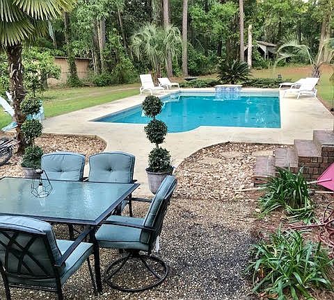 If you are looking for a home with a POOL and want to live in town, look no further! This lovely 3BR/3BA has a glassed sunroom with access to the patio. The living room is spacious centered with a large fireplace enhanced by built-in custom cabinets. Open to the living area is the remodeled kitchen with granite counter tops, gas cook top, stainless steel vent hood, large pantry and a wet bar. The large master suite has beautiful hardwood floors and two large walk-in closets. Enter the luxury tiled bath with double vanities, large tub and separate shower. The large patio overlooks the salt water pool, perfect for entertaining. There is room for expansion on this lot! The oversized storage building is perfect for your boat, toys and lawn equipment. Call today to view this property