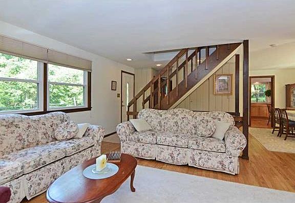 Beautifully maintained, neutrally decorated home with open floor plan, hardwood floors throughout, updated kitchen and baths, large wrap-around deck and wonderful yard