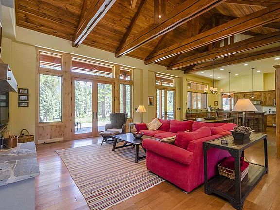 Exceptional custom luxury mountain home with spectacular views, located on the highly rated Grizzly Ranch Golf Club in private, gated community. 4 large bedrooms each with its own private bathroom (4 1/2 baths). Large great room includes gourmet kitchen, dining table and living area. The kitchen includes 3 dishwashers, 3 ovens, Dacor gas range, 2 sinks and a large island with raised bar. Large separate buffet with wine fridge. Screened porch also has windows which are installed in the winter. A large back patio overlooks the golf course. There is a 2 car garage with additional golf cart garage and workshop. Enjoy the Grizzly Ranch Outpost which features a gym, pool, hot tub, BBQ area, volleyball court and clubhouse with pool table and ping pong. A beautiful retreat year round to get away from it all and enjoy the Lost Sierras