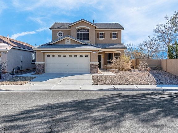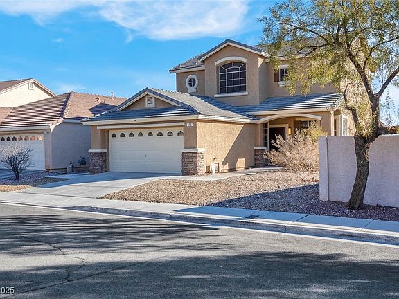 Stunning Summerlin home situated on a prime lot, offering breathtaking views of the Las Vegas Strip and mountains from the private primary balcony. This remarkable two-story residence features an open floor plan with vaulted ceilings, 4 spacious bedrooms, 2.5 bathrooms, and two separate living areas. The kitchen is equipped with traditional oak cabinets, stainless steel appliances, and white tile countertops. The beautifully renovated backyard boasts a covered patio, artificial turf, and a stub for a fire pit or outdoor kitchen. A brand new sparkling pool, completed in 2023, features a beach entry that transitions into a deeper section, complemented by a large spa. Numerous upgrades include a new HVAC system, tankless water heater, water softener, luxury vinyl plank flooring, new carpet, and fresh interior and exterior paint. Near freeways, Summerlin hospital, minutes from downtown Summerlin, zoned for highly rated schools, great parks, shopping, and more!