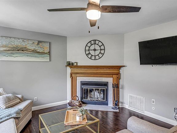 You will love this townhouse in St Charles County that offers maintenance free living! The main floor features a living room with a wood burning fireplace, bay window & updated half bath. Through the sliding doors off of the eat-in kitchen you will find access to an oversized balcony with maintenance free deck. The kitchen has newer counters, pantry, & garbage disposal (2022). Throughout the main level you will find new engineered hardwood floors & updated light fixtures throughout the home. You also have a private main floor laundry off of the kitchen. The upper level features two large bedrooms, one a master suite & a shared access full bath with double sink, tub & separate shower. Bedrooms have ample closet storage, natural light & ceiling fans. The lower level is partially finished & can be used as living space or as a storage area & walks out to a 2 car garage. All conveniently located near the Page ext & just seconds from Hwy 70. Location: Suburban