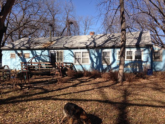 5 acres, rural water, attic fan, wood stove/propane heat. Mature trees, organic garden, chicken house, detached garage, sheds and barn. Huge fenced in yard. 5 miles from Humboldt and 8 miles from Iola.