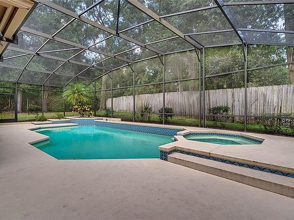 This home is nestled on an oversized lot among mature trees, providing a park-like setting when you arrive and is the only floor plan like this in the neighboorhood! Features 4 beds, 3 baths and nearly 2,600 square feet of living space, with beautiful pool views the moment you arrive. The foyer opens to the formal dining and formal living rooms, with stately columns and pool views through double glass doors. Notice the crown molding in the formal living and tray ceiling and chair rail in the formal dining provide a luxurious ambiance. The family room is centered around a wood burning brick fireplace with views of the pool. The kitchen has granite countertops, prep island, stainless steel appliances, a built-in work area, over cabinet lighting, eat-in bar, and an adjacent breakfast nook. Extend your entertainment to the fully screened in pool and lanai, that features built-in surround sound throughout the entire home! Plenty of covered sitting areas open to the pool and spa, with the private backdrop of trees and lush landscaping. This is truly a private oasis! The master suite opens to the lanai through French Doors, and the master bath features dual sink vanity, walk-in glass enclosed shower, soaking tub and separate water closet. Meticulously maintained with a home generator, new floors, new paint, new pool pump, & new landscaping ??? this home is better than new. Home Warranty also transfers! Just a short walk to Wekiva Springs State Park, close to shopping, dining and zoned for great schools.