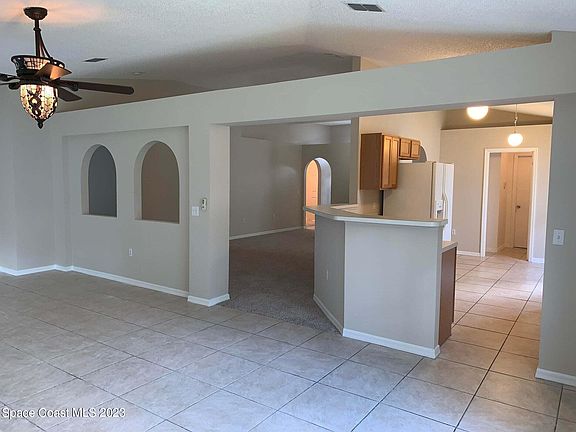Welcome to your new home in Palm Bay, FL. This spacious home features 3 bedrooms and 2 bathrooms located in Bridgewood at Bayside Lakes, the perfect size for any family. With vaulted ceilings newer carpet and tile, and two car garage. The master bathroom features a jetted tub with a door to the back porch. Enjoy the convenience of a fully equipped kitchen, including a refrigerator, oven and stove, and dishwasher. The comfortable living room provides plenty of space for relaxation and entertainment. With a great location, you can easily access all the attractions Palm Bay has to offer, and only minutes from I-95 and the beaches. Relax and enjoy the Florida sun on your private screened-in patio. This home is perfect for those seeking a gated community with an affordable HOA.