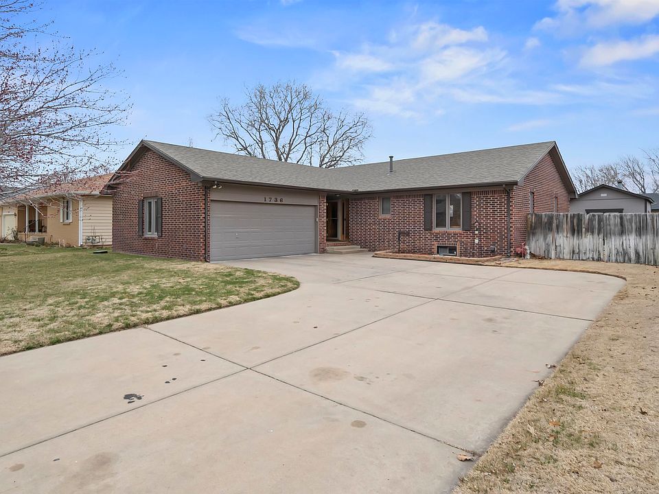 OFFER DEADLINE IS FRIDAY 3/22/24 AT 10AM. Discover the epitome of comfortable living in this full brick ranch, boasting a new roof installed in January 2024. Enter into the open living room with vaulted ceilings, creating a spacious atmosphere perfect for entertaining or relaxing with loved ones. The kitchen features wood laminate flooring, offering both durability and charm, while the main floor laundry adds convenience to daily chores. Enjoy a morning coffee at the built-in coffee bar in the main hallway before retiring to one of three bedrooms on the main floor, including a 3/4 master bathroom and full hall bathroom. The fully finished basement offers a retreat with a spacious rec room, complete with a woodburning fireplace for cozy evenings. Additional rooms include a light & bright 3/4 bathroom, a large bedroom with a walk-in closet, the opportunity to finish a bonus room to create a home office, playroom, school room, home gym, etc and still have ample storage space. Outside, the fenced backyard boasts a huge patio, perfect for outdoor gatherings, along with a storage shed for added convenience. With a side-load attached garage, irrigation well, and sprinkler system, this property offers both functionality and charm. Don't miss the opportunity to make this home yours.