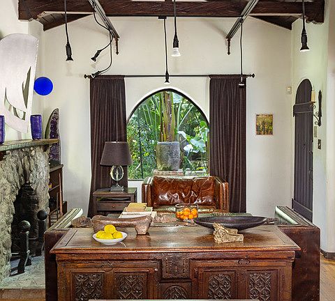 The Koller Residence, a.k.a. Casa de Pajaros: Venerable as the California Missions, legend has it that Koller carefully crafted his visionary home from salvaged materials stone by stone, and artifact by artifact from 1928 all through the depression years, and only laying his trowel down as World War 2 was ending in 1945. Hidden within a secret mountain glen where John Burroughs kept a summer cabin, and John Muir took his repast, one comes upon "the house of birds" as one might a Mayan Temple deep within the jungles of Central America. The sense of mystery and magic is pervasive. The property is offered with the understanding that the new owner will not find the house, but rather Casa de Pajaros will select its new owner.