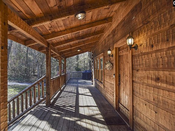 One of a kind log home nestled on just over 10 acres, perfect for horses or those who just desire privacy and peacefulness. Home features open layout with master suite on the main level and one additional bedroom that would make a great office or nursery. Kitchen, dining and great room are all open to one another. Lots of gorgeous heart of pine hardwoods! Upstairs, there's a balcony overlooking the great room, 2 bedrooms and 1 full bath. The basement (currently being used as 5th BR) includes a living area, large closet and full bath and is accessible from the exterior as well as interior stairs. Attached 2 car garage on the lower level and lots of parking in the front of the home. Logs and decks were recently pressure washed and sealed in Aug. 2018. Both HVACs were replaced in 2018. The rear property line runs along Little Hollow Creek. The land can accommodate 5-6 horses and has 4 horse paddocks with riding arena. Fenced for equestrian on 5 acres with 2 stall horse barn & shed. 4 miles to IGA, 11 miles to Publix, Lowe's Foods grocery stores & CVS and 13 miles to Interstate 20