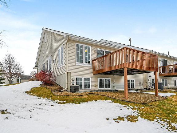 Come and see this END unit in the highly sought-after Deerfield Community. Plenty of sunshine and daylight with all living available on main level. Located on a private street with the backyard backing up to wetland view, birds, & wildlife - No backyard neighbors! Main floor has an eat-in kitchen with separate dining area. Private master suite with separate tub & shower, 2 sinks and large walk-in closet. New roof 2021. Sun room/TV room plus living room with gas fireplace. Covered front porch with cement area seating. Lower level is finished with family room, lookout windows. Plenty of storage throughout the home plus utility room/workshop area. Close to walking trails and 1/2 mile to Cleary Lake Regional Park: Paved trails, pavilion and swimming beach, canoe & kayak rental, playground, 9-hole golf course, camping, etc.