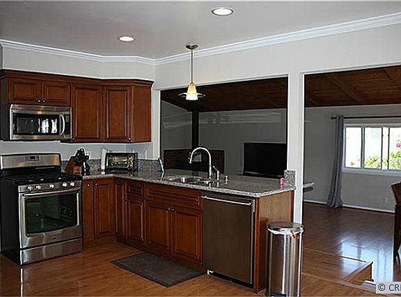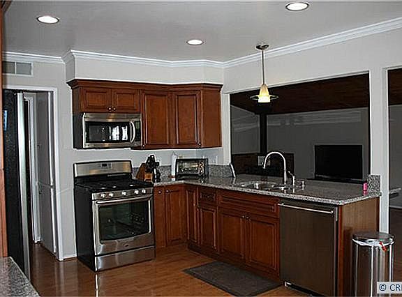 GREAT CAL CLASSIC WITH MASSIVE FAMILY ROOM ADDITION HAS SOARING CATHEDRAL WOOD CEILINGS AND TRACT LIGHTING. REMODELED KITCHEN WITH NEW CABINETS, GRANITE COUNTERS AND STAINLESS APPLIANCES.5 BURNER GAS RANGE. KITCHEN OVERLOOKS MASSIVE GREAT ROOM W/ POT BELLY STOVE FIREPLACE ON BRICK HEARTH. TO SHOW IS TO SELL THIS GREAT HOME. NEW PAINT INSIDE AND OUT. LIGHT & BRIGHT, OPEN FLOORPLAN WITH 2 BEDROOMS DOWN & 2 BEDROOMS UP. (1 DOWNSTAIRS BEDROOM HAS CONVERTED TO A STUDY, BUT STILL HAS A CLOSET. DUAL PANED DOORS & WINDOWS. LAMINATE WOOD FLOORING. HARDWOOD STAIRS. NEW VANITIES IN BATHS, CLEAR GLASS DOORS. TASTEFULL DECOR THROUGHOUT. EXCEPTIONAL CURB APPEAL AND TROPICAL LANDSCAPE WITH EXTERIOR LIGHTING MAKES THIS DREAM HOME MOVE IN READY.