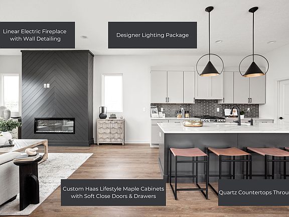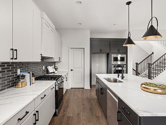 Welcome to Midland! Step inside this spacious 4 BR home w/ welcoming front porch. Open concept main floor with the great room and gourmet deluxe eat in KI w/ custom cabinetry, quartz countertops, stainless steel appliances and large island. Second entry off the 2 car garage for friends and family. Private office w/ glass doors. Upstairs features a loft & 3 bedrooms including the owner's suite w/ double sinks, tile shower, walk in closet w/ built in shelves and convenient upstairs laundry. Finished lower level with wet bar rough in and full bathroom. FULL LAWN IRRIGATION! Enjoy the walking paths including direct access to the Midland Trail and all the amenities to come that will include sports courts, pool, splash pad, concert pavilion and a stocked fishing pond.