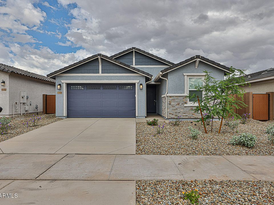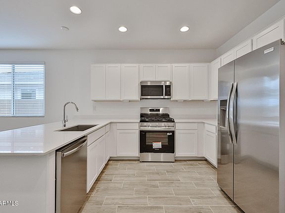 Beautiful single level 5-bedroom, 3 bathroom home in master - planned community! Never lived in! This Lewis home offers a great room floor plan, upgraded kitchen with Quartz countertops and stainless steel appliances. Tile flooring with carpet in bedrooms, covered patio and artificial grass backyard with pavers. Home is conveniently located in desirable Surprise.