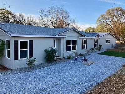 PRIVATE location on 1.8 acs. Smart 3 bdrm & 2 full baths master suite has a garden tub and separate shower, vaulted ceilings in the master bdrm, master bath and living room. Kitchen boasting all new appliances and new granite counter tops. A full size two car garage and seasonal creek, mostly fenced, the land is rolling and needs to be brought back to a mini farm Manufactured home on a foundation.