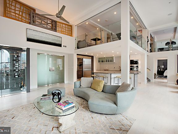 Rare opportunity to own one of the most magnificent Penthouses within 2 blocks of Rittenhouse Square. This property has been fully renovated from the stunning entertainment area with soaring 20ft ceilings to your private roof deck with full-on city views. The owners had their designer come in and restore this property into a sophisticated sexy chic unparalleled penthouse. No expense was sparred, as awaits you is a brand new chefs quality kitchen with stainless steel appliances , Gaggenau cooktop, sub-zero freezer, built in Miele steamer & coffee maker, Fisher & Paykel dishwasher, & Blomberg oven. Over sized palladium windows throughout the entertainment section and into the master suite, flooding this property with sunlight. The master suite bathroom has been designed into a his and hers adjoining shower, with an additional his and her closets. This ultra modern design continues on to the 2nd floor with a workout section and new office space and full ultra modern bathroom. The 2nd floor opens up to a 2nd bedroom with a completely private glass half wall and automated retractable blinds. Now let's head up into your private oasis on the 3rd level. Welcome to the pilot house, complete with lighted bar, tv and music. Then what a better way to end or start your day on your very own just completed 550 sf of your personal, private roof deck with phenomenal city views. Additional features separate glass see through wine room section, gas fireplace, and all new ceiling fans and beautiful dining room Chandelier. This Penthouse is 2900 square feet including the entrance hallway. BONUS!! ACTIVE APPROVAL TO BUILD UP 20 FEET, which is an additional 1500 sq ft above the roofdeck. Parking is offered for one year, 1 block away. This residence is located on the top floor (12th) with elevator and personal code to take you to your floor. Private boutique pre-war building, 2 blocks from the square. This is a TRUE TURNKEY PENTHOUSE .