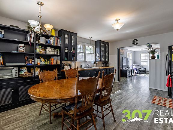 Updated home located very close to downtown Cody, located within R3 zoning, which allows for STRs. This home has with 2 bedrooms and 1 bath on the main level along with a 3/4 bath with a versatile non-conforming bedroom in the basement. The expansive kitchen and living room area provide ample space for all your needs. There is a 2-car detached garage, as well as a carport that gives you good coverage from the Wyoming elements and additional covered parking area. This lot is .32 acres, which is larger than many of the surrounding lots. Enjoy the large, fenced backyard with landscaping, and fruit trees.