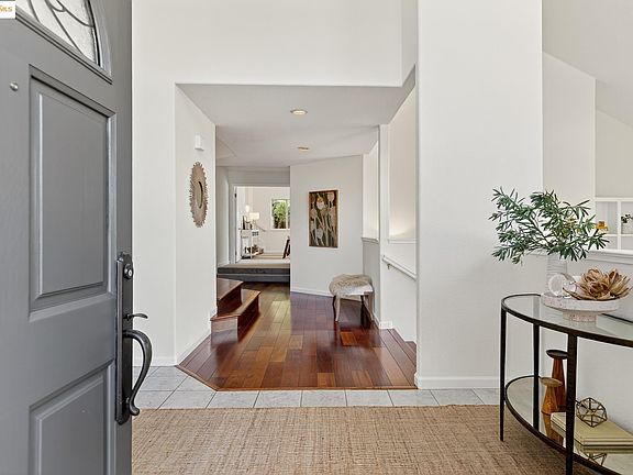 Stunning in design—modern, spacious, and filled with natural light. This split-level home offers both “wow” moments and quiet intimate spaces. The soaring-ceiling living room greets you with hillside vistas, while the updated kitchen with breakfast nook flows to a private deck, perfect for family dinners or larger gatherings. A separate family room with a fireplace and its own deck invites relaxed evenings, and the adjacent office easily doubles as a guest room or creative space. Upstairs, the generous primary suite captures serene garden scenes and distant San Francisco Bay views, complete with a sitting area, large walk-in closet, and spa-like bath. Three additional bedrooms and a full hall bath provide flexibility, including one with a private terrace and sparkling city outlook—ideal for reading in the sun or enjoying a quiet cup of tea. A rare three-car attached garage with ample storage. This home is on a peaceful Oakland Hills cul-de-sac with no through traffic, the setting is as tranquil as it is convenient. Children stroll to nearby Thornhill Elementary, deer occasionally wander past, and neighbors gather for impromptu block parties. Yet just minutes down the hill, Montclair Village offers cozy cafés, farmers’ markets, and charming boutiques.