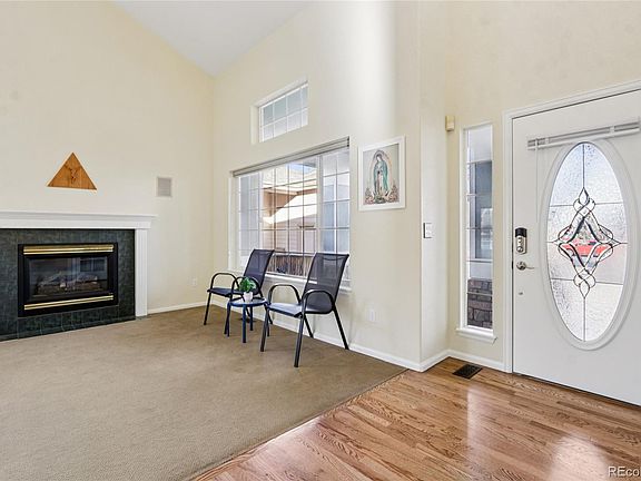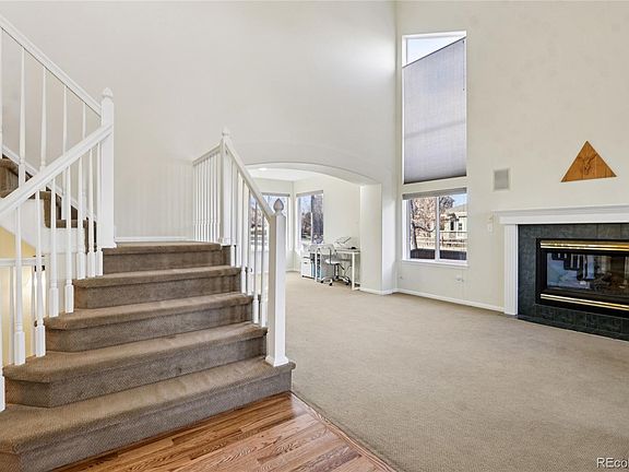 Welcome to this beautiful home in Longmont’s desirable Spring Valley neighborhood, where a charming covered front porch invites you inside. Step into the bright entrance foyer with soaring ceilings, flanked by a dedicated home office on one side and an elegant formal living room on the other—complete with dramatic ceilings and a cozy fireplace. The formal living room flows seamlessly into the dining room, creating an ideal spacious setting for entertaining.