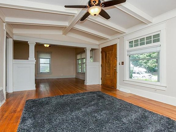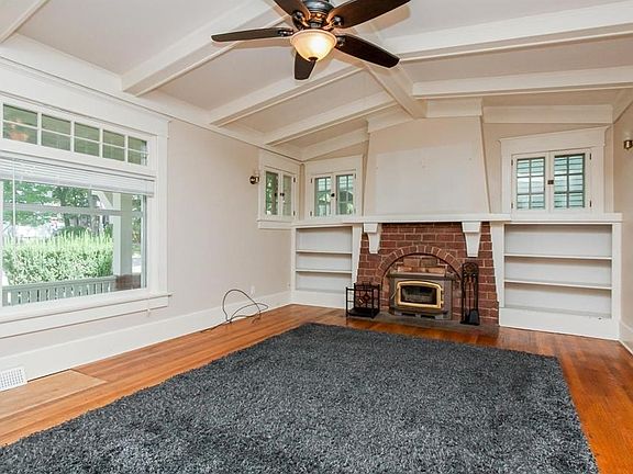 Enjoy the colors of autumn as you relax on your expansive porch or on the backyard patio! This home is full of charm including original wood floors and a stately fireplace framed by classic built-ins. The open floor plan between the formal dining room and living room, large kitchen that easily accommodates an island for prep or additional eat-in space, remodeled bathroom, and first floor laundry and mudroom are just the beginning of the perks you don't normally find in a home of this classic era. It also offers a 2-stall detached garage and fenced-in backyard. Walking distance to schools and parks and easy access to shopping, restaurants, downtown and the interstate.