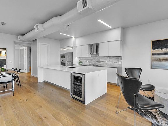 Location & Panoramic Views! This chic and contemporary condo in the heart of LoHi is the PERFECT work-from-home space and will not disappoint. With a bright, open floor plan, tremendous floor to ceiling windows that overlook the Denver skyline and a private elevator entrance, there isn't much left to be desired by a modern city dweller! Suite 401 boasts luxurious high-end finishes including: wide plank wood flooring, Italian quartz countertops, Bosch appliances, waterfall edge island, Varenna by Poliform Kitchen Cabinetry, mechanized blinds, large bedrooms with upscale ensuites and exquisite lighting. Don't forget your laundry room and secure 2 car attached garage with extra storage space! You're in walking distance of the hottest bars, shops and restaurants and all in the heart of LoHi! Just steps to Happy Camper Pizza, Little Man Ice Cream, My Neighbor Felix Mexican restaurant, The Bindery Eatery, Mizu Izakaya Sushi, shops, gyms, Downtown Denver, Riverfront bike and running paths and the list goes on! This home was barely lived in and feels brand new - this is Denver city living at it's finest! Whether you're looking to entertain or spend private, cozy nights at home in front of the fireplace, this condo is perfection and offers the best quality of life.