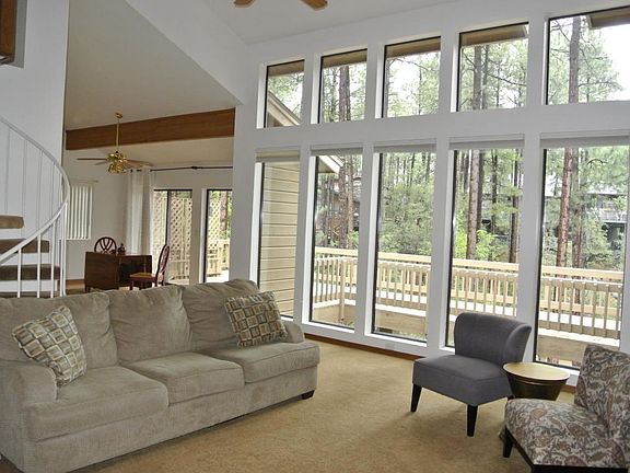 Live in the tall pines of popular Hidden Valley Ranch, close to downtown!! Beautiful/unique custom home! One level living! Great rm w/high ceilings/big windows to take in the views! Stone fireplace, lighted art niches & cozy loft area add to the charm! Pretty kitchen has granite counters, island, huge walk-in pantry, newer dishwasher & fridge! Open view deck! Spacious master w/2 walk-in closets, skylight, garden tub & shower, new tile floor in bath. Remodeled .5 bath! Large laundry rm w/sink/cabs! Lower level great for guests! Spacious family rm, 2 bdrms, full bath & 4th bdrm/office! 2 cool covered patios & fenced yard area! Newer exterior paint, front security gate. National forest hiking trails across the street! Enjoy the pool/ clubhouse/tennis/handball. HOA RV parking! Wonderful home!!