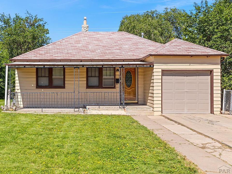 MUST SEE!! Are you ready to come live your best life in this beautiful move in ready 3 bedroom, 1 bath, 1 car attached garage. This home has a covered front porch to have morning coffee and watch your beautiful flowers bloom. As you walk thru this gorgeous home you will notice all of the updated features such as laminate flooring, new carpet, tile, light fixtures, new bathroom vanity. This home has the very desirable split bedroom layout. There is a partial unfinished basement for storage. Enjoy the family get togethers in the park like back yard. Plenty of space for a garden or having a kids jungle gym. This is a rare find in Pueblo of a home with so much charm and character. Covered backyard patio for get togethers and sprinklers front and back to maintain your lawn. Alley is behind property if you want create access. Easy biking/driving distance to City Park, Pueblo Zoo, Arkansas River Trail, Pueblo Riverwalk, Public library, coffee shops, and yoga classes.
