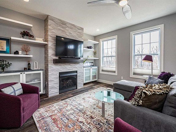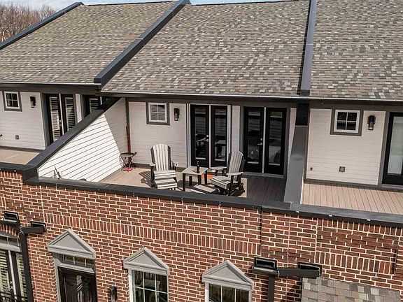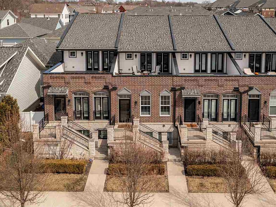 Welcome to a modern take on a classic Brownstone townhome. You'll love the one-of-kind design with a west-facing private rooftop terrace overlooking open space, timber and Coralville in the distance. The elevated touches speak to a casual elegance flowing through the airy rooms with 9 foot ceilings. Eyes are drawn to the fireplace with floor-to-ceiling tile reminiscent of gentle waves flanked by the substantial floating shelves and soapstone topped cabinets built by an Italian carpenter trained in shipbuilding. The silver foil backed glass tile brings a play of light and a bit of sparkle to the kitchen backsplash. A built-in bench spanning the length of the dining room is always set for entertaining. The kitchen impresses with an expansive quartz island, soft close drawers and spacious pantry. Upstairs the primary bedroom flows onto the rooftop terrace through French doors. There is no better place to catch a beautiful sunset and listen to the sounds of birds on the Iowa River! Two walk-in closets grace the primary, as well as an ensuite complete with a double sink vanity and large tiled walk-in shower. The spacious junior suite second bedroom includes a walk-in closet and attached full bath. The lower level features a family room, full bathroom, true third bedroom with walk-in closet. The thoughtful addition of a frosted glass door allows privacy for the bedroom but also allows light to filter into the lower level family room.
