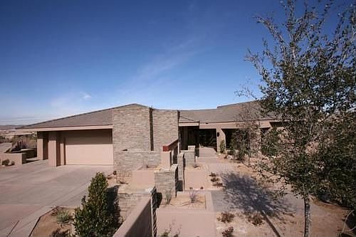Enjoy the views from this custom home with huge windows. Travertine floors. Unique copper fireplace in great room. Two master suites. Front courtyard.