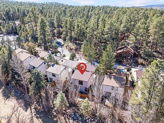 Live among Ponderosa pine trees in this gorgeous tri-level 3 bedroom, 3 bath patio home. Nestled against the Prescott National Forest, enjoy hiking trails right from the neighborhood. The greatroom & dining room features a vaulted, beamed ceiling, gas fireplace with access to atrium patio ideal for entertaining. The remodeled gourmet eat-in kitchen features custom cabinets, granite counter tops and new appliances. The laundry room has a new washer & dryer. The home features several patios for great outdoor living space including an upper deck off the master bedroom. 2-car garage with built-in storage units. Communitiy amenities include clubhouse, racquet ball, pickleball & tennis courts, pool, boche ball, meeting/game rooms, RV parking.