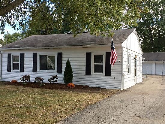 Completely remodeled. Northside 3 bedroom stairless ranch with huge family room addition. Custom paint, knockdown texture, brushed nickel fixtures. Completely fenced in .25 acre yard. Large 2.5 car detached garage. Deep Soaking tub, pedestal sink. Appliances including over range microwave. New flooring, blinds and landscaping. Newer windows, doors, water heater, furnace, AC. Low Caledonia taxes.