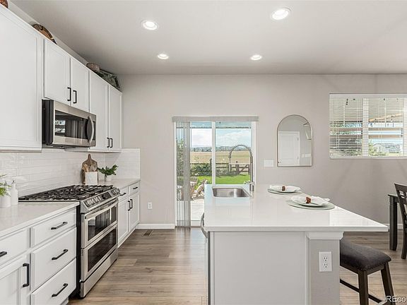 Perfectly nestled in the highly desirable Morgan Hill neighborhood backing to open space with unbeatable views! Step inside and you'll immediately fall in love with the bright, open layout featuring stylish EVP flooring throughout the main level. The heart of the home is the chef-inspired kitchen, complete with a large eat-in island, sleek quartz countertops, a high-end gas stove with dual fuel double ovens and plenty of space for entertaining. The kitchen effortlessly flows into the spacious great room, making it ideal for gatherings or cozy nights in. The flex room provides space for a home office, crafting room, or a kid's play area. A convenient powder bath rounds out the main floor. Upstairs, you'll find a relaxing owner's suite with a private en-suite bath, two additional bedrooms, a luxurious full bathroom, and a laundry room right where you need it. The basement is finished and features a living room with a wet bar, 4th bedroom, and another lux bathroom. Your backyard oasis features a covered patio, vibrant garden beds, and plenty of space to entertain. Enjoy access to fantastic community amenities like a pool, parks, and scenic trails. Enjoy everything Erie has to offer, from its small-town charm and stunning mountain views to the 63,000 sq ft community center and 20,000 sq ft library. Plus, you're just minutes from shopping, dining, and outdoor adventure. Don't miss your chance to make this beautiful home yours!