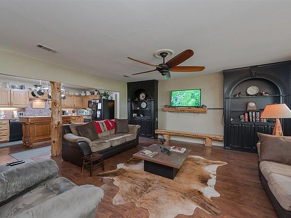 WELCOME HOME, TEXAS RANCHERS! Electric, iron gate entrance greets you on your drive up. Quaint ranch house invites you in or mosey on back to the 6-stall horse barn, complete with tack room, feed room and wash stall. The home offers oversized owner's suite with sitting area, open concept living-kitchen-dining area, and a closed in breezeway that can act as a den-mudroom. Along with a stock tank in the back pasture, you will find a fenced arena, roping pens and chutes and a huge 40x78 shop-storage building. All of this is ready for YOU!