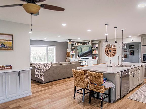 Fully remodeled farmhouse in 2020 offers 1800 sqft featuring 3 bedrooms and 2 bathrooms and a beautiful kitchen with open floor plan. Enjoy sitting on a full enclosed porch with a wall of windows. Main floor laundry. Attached garage. Brand-new whole-house generator. For a bonus oasis, there is an additional 3,400 sqft of finished living and shop space. All this sits on 2 acres and includes a brand-new 30' above-ground swimming pool (installed in 2024) with a poly deck adds the perfect touch for outdoor enjoyment and a large concrete driveway., Utility Supplier: Adams Electric