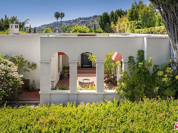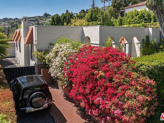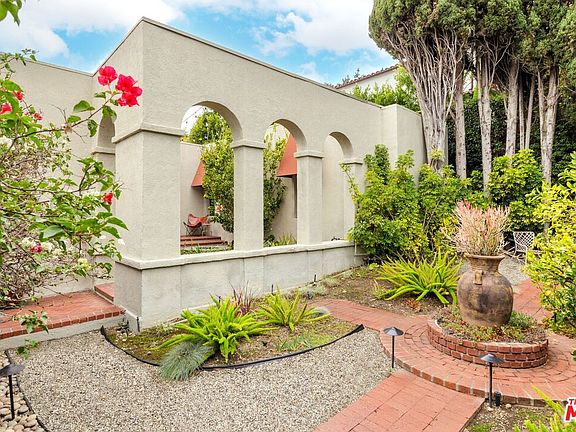 A rare and refined 2BD, 3BA hideaway in the lower Hollywood Hills, discreetly tucked behind towering hedges and wrought iron gates. Originally designed in 1920 by legendary architect Myron Hunt, the visionary behind the Huntington Library, the Rose Bowl, and the Ambassador Hotel, this approx. 2,220 SF villa-style sanctuary blends timeless elegance with a modern sensibility. A gated entry leads to a romantic garden with cypress, citrus, and arched brick courtyard with tiled firepit. Inside, a skylit foyer introduces dramatic public rooms, including a step-down living room with marble fireplace, vintage chandelier, and formal dining that flows into a reimagined kitchen with bold cabinetry, stone counters, and stainless appliances. Classic craftsmanship meets modern design with restored parquet floors, ornate moldings, and tailored wallcoverings, all reimagined with bold finishes and striking lighting. Two ensuite bedrooms include a serene primary with walk-in and direct outdoor access. Rear grounds feature a wraparound veranda, sundeck, and sparkling pool. Gated driveway with ample parking and detached garage. An elegant oasis just minutes from Runyon Canyon and the Sunset Strip.