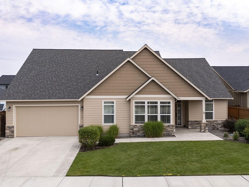 Lovely Vista Meadows 1-Owner home in Northwest Redmond. Single level, tandem 3 car garage & fenced. Vaulted great room and bright & sunny 4th bedroom or office. Quartz countertops in kitchen & bathrooms, stainless steel appliances, laminate flooring. Primary bedroom with soaker tub & large walk-in closet. Central A/C. Vaulted covered back patio. Landscaped front & back. Move-in ready!