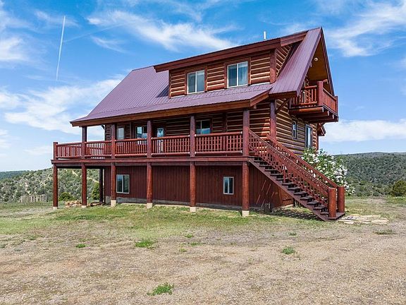 Nestled amidst the breathtaking landscapes of rural Durango, Colorado, this beautifully maintained log home offers a serene retreat on an expansive 36-acre property surrounded by a panorama of majestic mountains and sweeping vistas that stretch as far as the eye can see such as the Lukachukai Mountains, Shiprock, Mesa Verde, La Plata Mountans, Sleeping Ute, and even fireworks from Aztec and Farmington. A perfect spot for savoring sunrise morning coffee while soaking in the tranquil surroundings. Step inside to find an open-concept living space bathed in natural light, with large windows strategically placed to frame the stunning 360-degree views. The expansive deck invites you to unwind while gazing at the star-filled Colorado night sky. Wildlife enthusiasts will delight in the frequent sightings of deer, elk, turkey, bears, Bobcats, and a variety of bird species that call this area home. There are 4 actual rooms used as bedrooms, two of the down stairs rooms do not have closets. The large detached garage/shop as enough room for 4 vehicles. Whether you seek a peaceful escape, a base for outdoor adventures, or a charming home to share with loved ones, this log home on 40 acres in rural Durango is a dream come true.