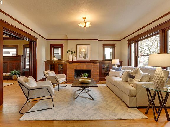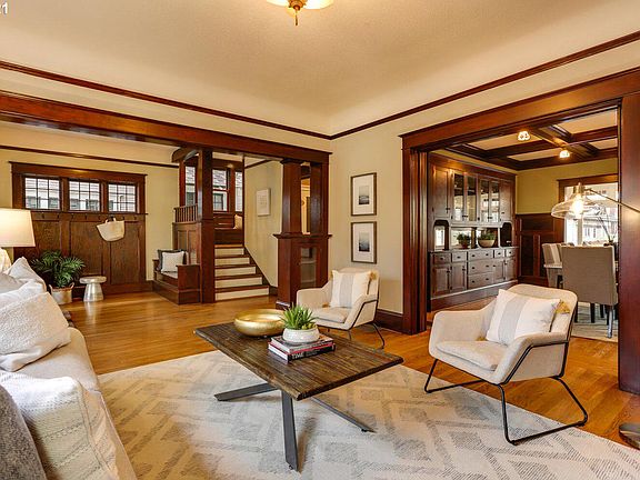 Ladds Addition Craftsman. Situated on the North Rose Garden. Outstanding renovation. Original features include, high ceilings, refinished mill work, built-in cabinets, bookshelves, hardwood floors and an open staircase. Newer kitchen w/eating area, large family room on the main, 4 bedrooms up, spacious master suite, private guest quarters, finished basement with a separate entrance. Beautifully presented and in move-in condition.