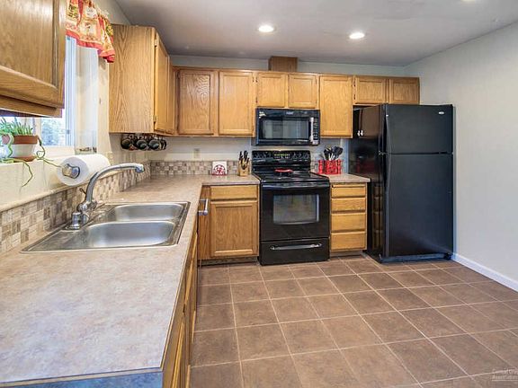 Situated on a corner lot in SW Redmond, this well cared for home seeks new owners! Lovely paver entry, 3 bedrooms, 2 baths, cozy living, dining & kitchen. Kitchen has a new natural stone back splash & lighting. Slider opens to a back deck that's perfect for bbq's & entertaining with expansive lawn & graveled area for a pool or fire pit & seating area. RV parking, 6' cedar fencing all around PLUS a storage shed for all your tools & sporting gear. Double car garage, auto sprinklers & convenient location!