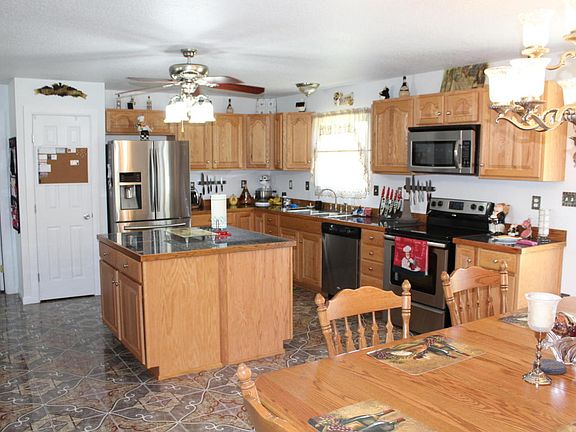Open floor plan, huge room sizes, wide hallway and tile flooring gives this one the impression of a much larger home. Fabulous kitchen with abundance of oak cabinets, large center island, built-in buffet and stainless steel appliances. Nice master suite with walk-in closet and large master bath/utility room. Oversized detached 2 car garage/workshop. 5 scenic acres. Conveniently located to I-49, quick drive to Ark.